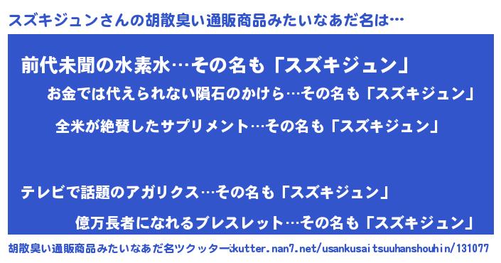 | ヘコむあだ名 | 『スズを』『スズキジュン(苦笑)』 |