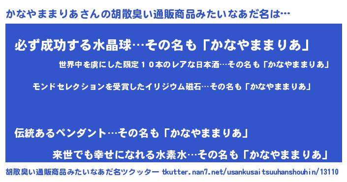 | 伝説のあだ名 | 『救世主となる占い師かなやままりあ』 |