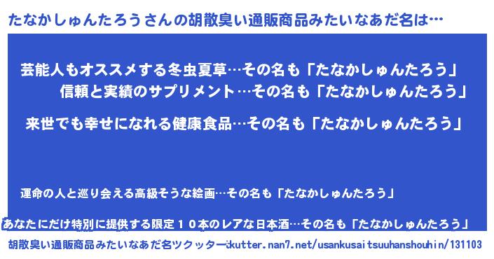 | 意味不明あだ名 | 『永久保存たなかしゅんたろう』 |