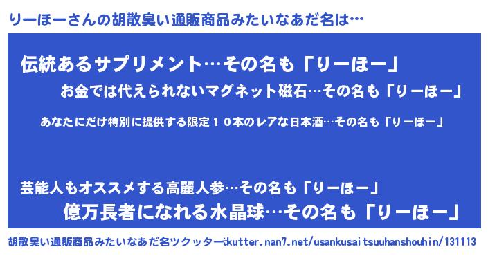 | ヘコむあだ名 | 『りーっぺ』『りーふぇ~』 |