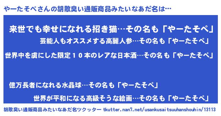 | ヘコむあだ名 | 『やーたそぺ(苦笑)』『豆乳』 |