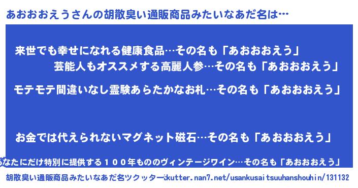 | ヘコむあだ名 | 『あおっふぃ~』『あおおおえう(笑)』 |