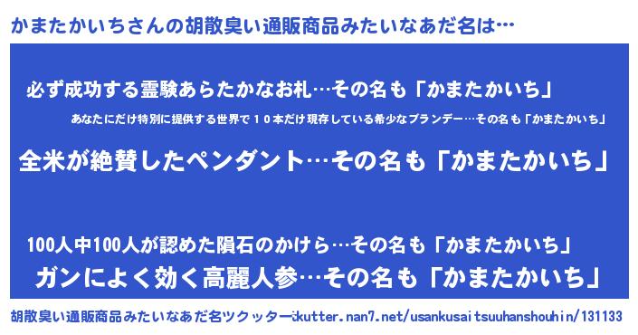 | 男性向けラノベタイトル風あだ名 | 『かまたかいちに滅ぼされるだけの簡単なお仕事です』 |