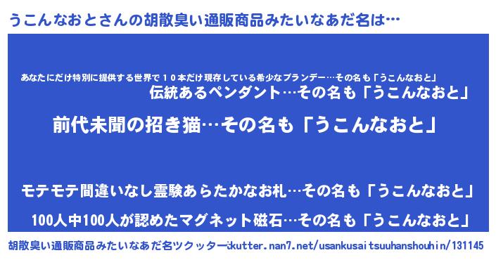| ヒーロー風カッコイイあだ名 | 『ネオウコンナオト』『仮面ウコダー』 |