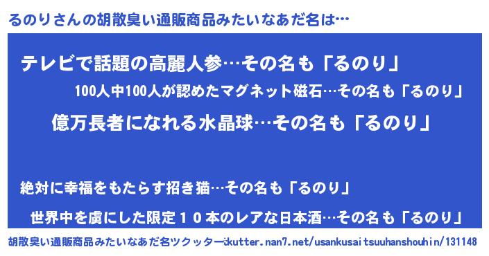 | ヘコむあだ名 | 『るのにゅー』『るのり(笑)』 |