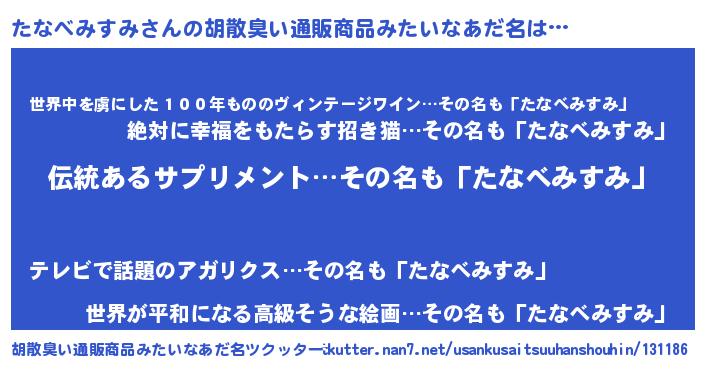 | 意味不明あだ名 | 『とにかく怪しいたなべみすみ』 |