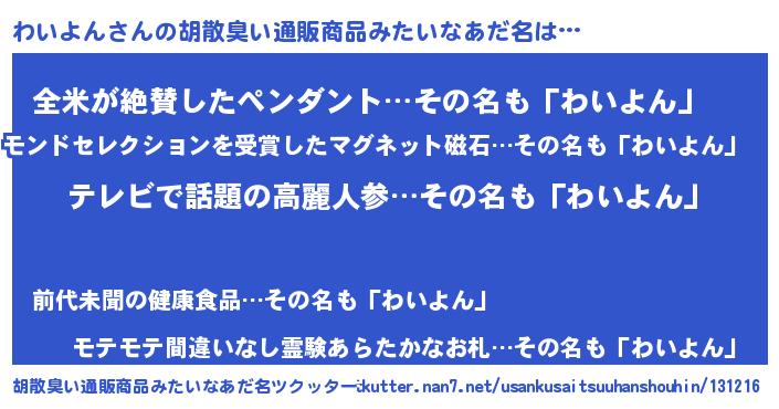 わいよんさんの胡散臭い通販商品みたいなあだ名をツクッター!