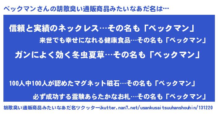 | 恥ずかしいあだ名 | 『ベックマンデラックス』『ベッリンリン』 |