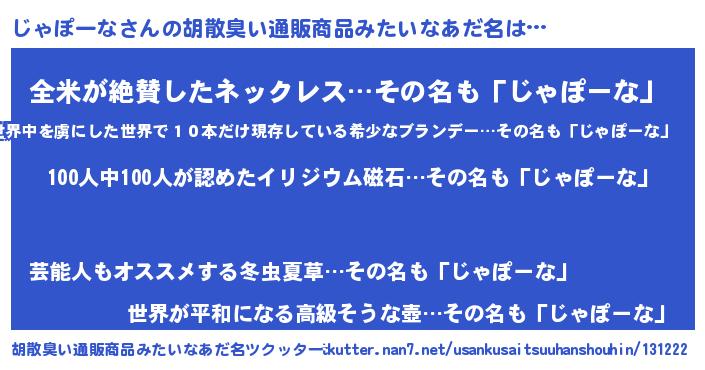 | 男性向けラノベタイトル風あだ名 | 『ジャポーナスレイヤー』 |