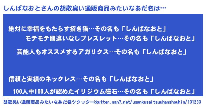 | ヘコむあだ名 | 『しんばなおと(苦笑)』『しんにー』 |