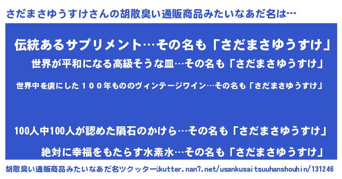 | 意味不明あだ名 | 『住所不定無職さだまさゆうすけ(1歳)』 |