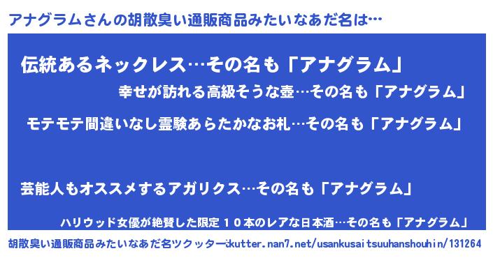 | 肩書あだ名 | 『アナグラムプロデューサー』 |