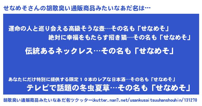 | 意味不明あだ名 | 『とにかく怪しいせなめそ』 |