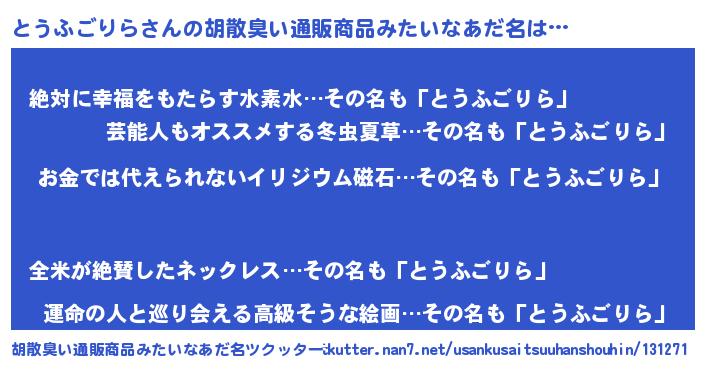 | ヒーロー風カッコイイあだ名 | 『友情の使者とうふごりら』 |