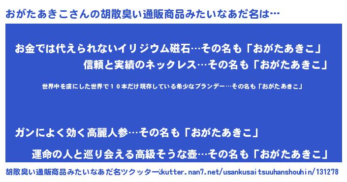 | 女子向けラノベタイトル風あだ名 | 『シンデレラおがたあきこ家の靴箱館』 |