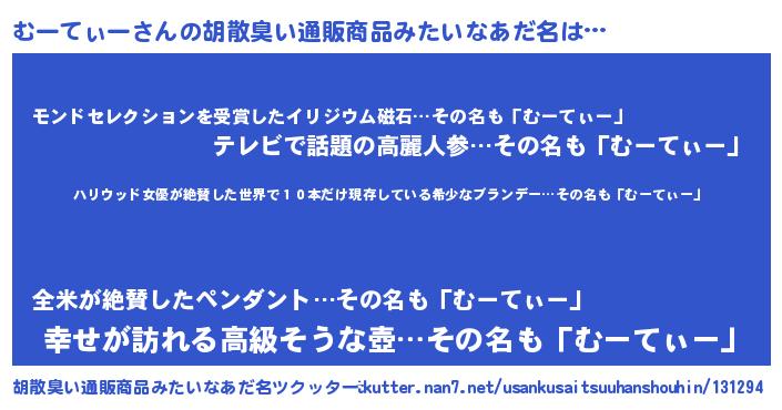 | ヒーロー風カッコイイあだ名 | 『仮面ムーダー』『天空の使者むーてぃー』 |