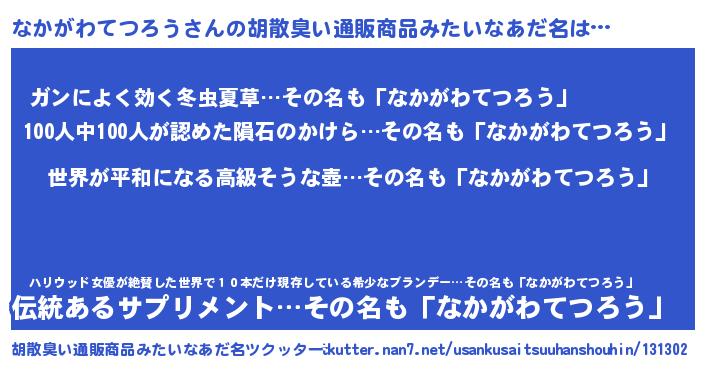 | 男性向けラノベタイトル風あだ名 | 『やはりなかがわてつろうの青春ラブコメはまちがっている 』 |