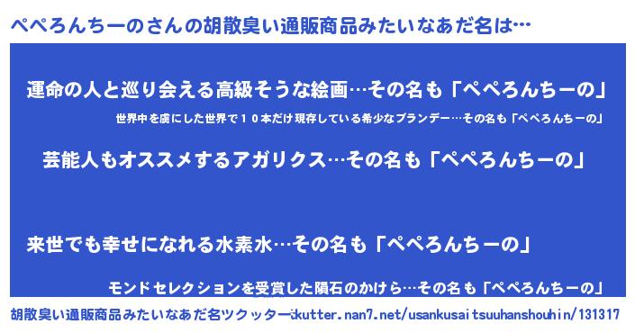 | 意味不明あだ名 | 『自称ぺぺろんちーの』 |