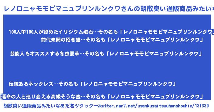 | 恥ずかしいあだ名 | 『レノロニャモモピマニュプリンルンクワデラックス』 |