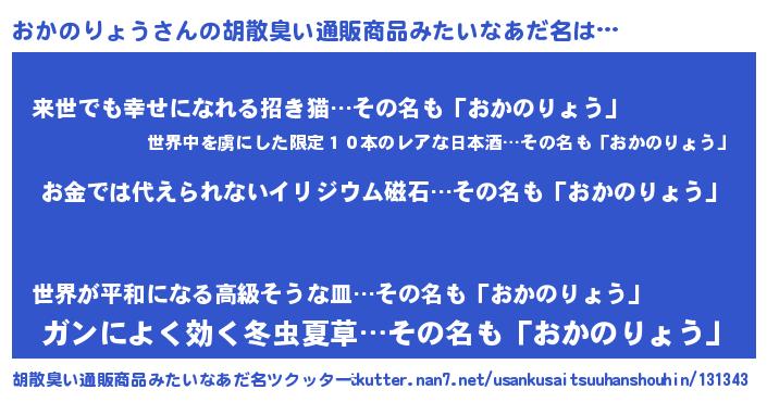 | 女子向けラノベタイトル風あだ名 | 『おかのりょう恋絵巻』 |