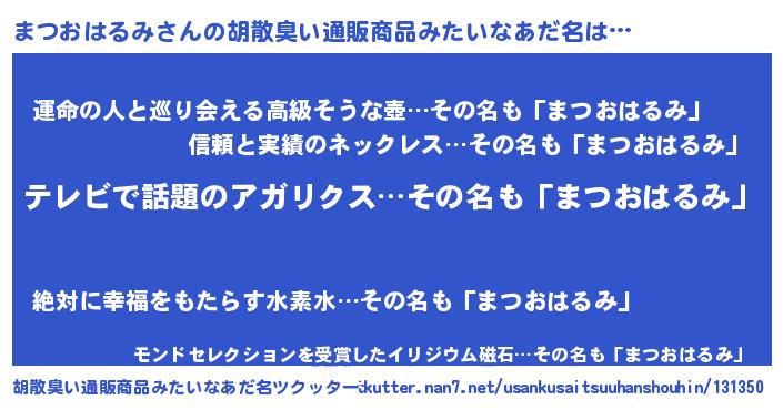 | 恥ずかしいあだ名 | 『マツオハルミデラックス』『まつっちょ』 |