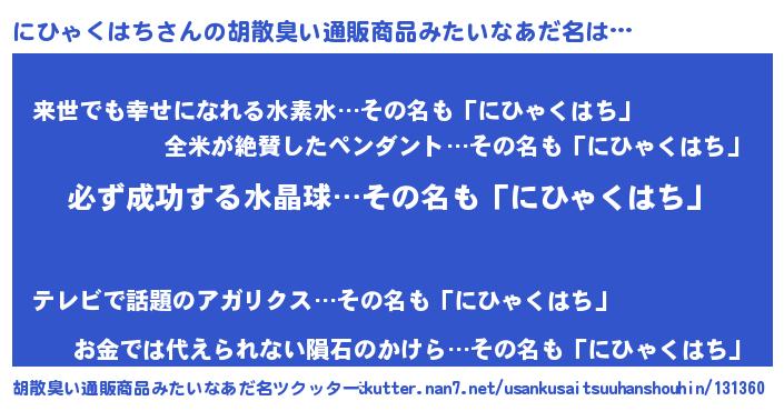 | ヘコむあだ名 | 『にひもー』『にひゃくはち(苦笑)』 |