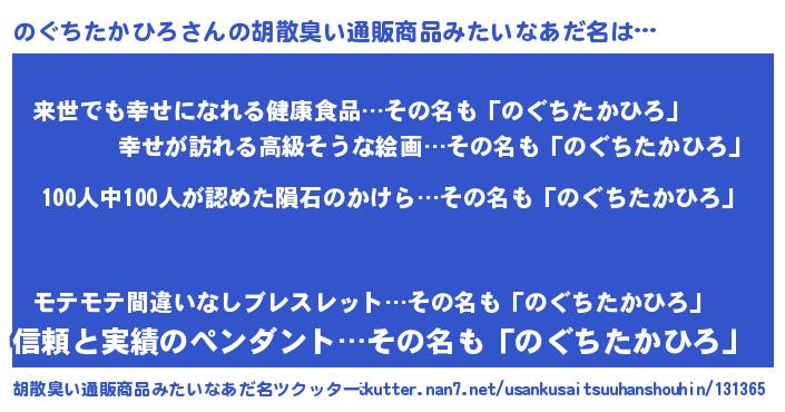 | ヘコむあだ名 | 『のぐちたかひろ(苦笑)』『のぐ太郎』 |