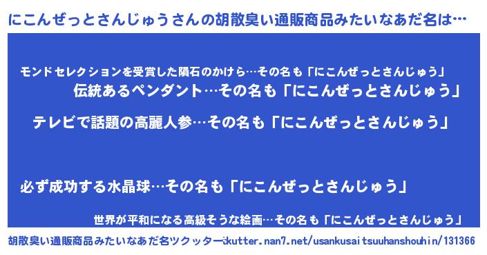 | 意味不明あだ名 | 『自称にこんぜっとさんじゅう』 |