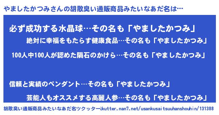| ヘコむあだ名 | 『やまもー』『やましたかつみ(苦笑)』 |