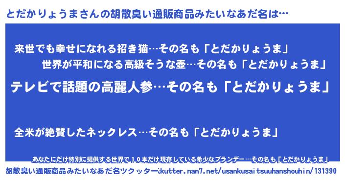 | 肩書あだ名 | 『とだかりょうま閣下』 |