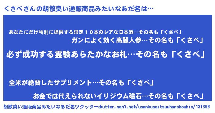 | 男性向けラノベタイトル風あだ名 | 『くさべの憂鬱』『クサベスレイヤー』 |