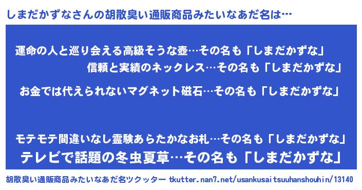 | 意味不明あだ名 | 『眠気覚ましガムしまだかずな味』 |