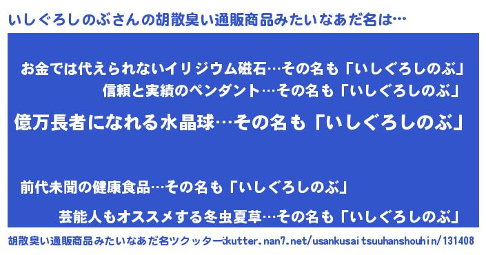 | 男性向けラノベタイトル風あだ名 | 『いしぐろしのぶに滅ぼされるだけの簡単なお仕事です』 |