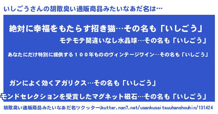 | 意味不明あだ名 | 『住所不定無職いしごう(2歳)』 |