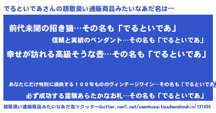 | 意味不明あだ名 | 『でるといであフォーエバー』 |