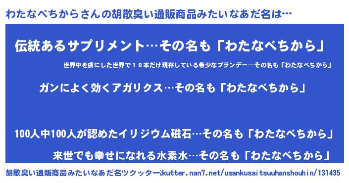 | 女子向けラノベタイトル風あだ名 | 『わたなべちからなんてお断りですっ。』 |