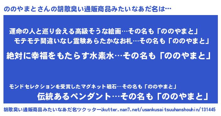 ののやまとさんの胡散臭い通販商品みたいなあだ名をツクッター!