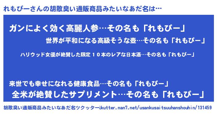 | 意味不明あだ名 | 『住所不定無職れもぴー(50歳)』 |