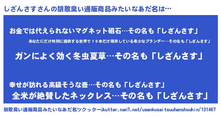 | 意味不明あだ名 | 『自称しざんさす』 |
