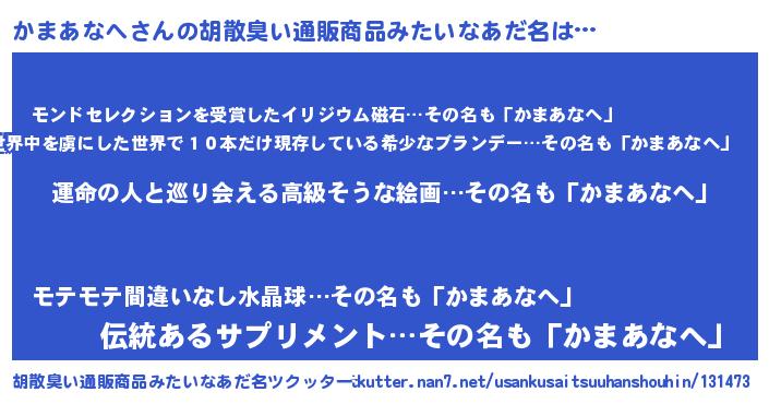 | 欧米人風あだ名 | 『かまあなへクリステル』 |