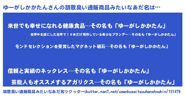 | 肩書あだ名 | 『ゆーがしかかたん助教授』 |