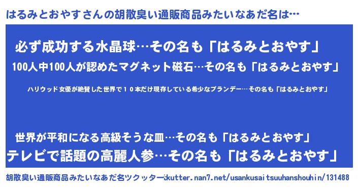 | 欧米人風あだ名 | 『ダレノガレはるみとおやす』 |