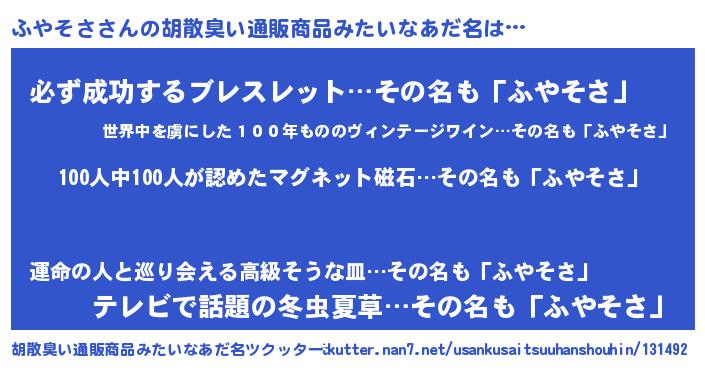 | ヘコむあだ名 | 『ふやにー』『牛乳』『ふやぷりん』 |
