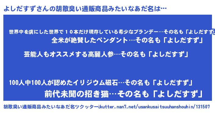 | ことわざ | かわいい子には旅をさせろ『かわいいよしだすずには旅をさせろ』 |