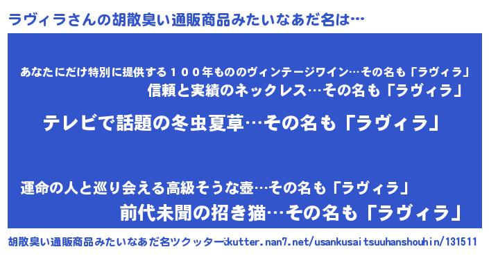 | 意味不明あだ名 | 『自称ラヴィラ』『永久保存ラヴィラ』 |