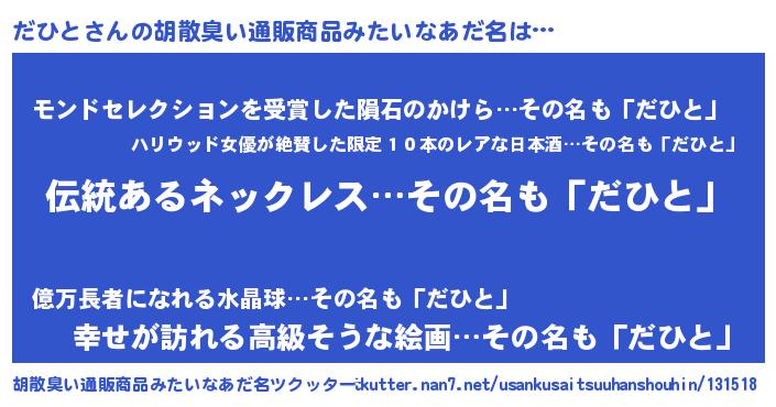 | 意味不明あだ名 | 『とにかく怪しいだひと』 |