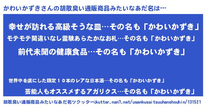 | 可愛いあだ名 | 『かわいかずきママ』『かわぷりん』 |