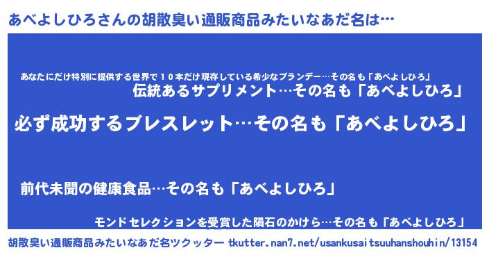| 男性向けラノベタイトル風あだ名 | 『あべよしひろの憂鬱』 |