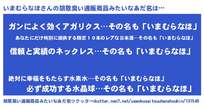 | 意味不明あだ名 | 『とにかく怪しいいまむらなほ』 |