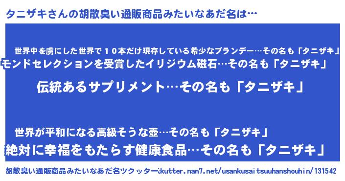 | ヘコむあだ名 | 『タニ太郎』『タニザキ(爆)』『豆乳』 |